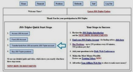 Transfer Funds ke JSS-Tripler Account telah berhasil. Silahkan Tutup Window dan cek pada menu Financial di Tab "Money Currently Available in Your JSS-Tripler Account ".